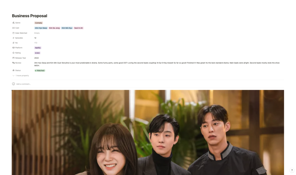 A collection of dramas and movies, allowing you to organise and keep track of your ratings, reviews and dates watched per drama and movie.